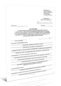 Форма бланка Заключение о соответствии построенного (реконструированного) объекта капитального строительства требованиям проектной документации, в том числе требованиям энергетической эффективности и требованиям оснащенности объекта капитального строительства приборами учета используемых энергетических ресурсов соответствует Приложению 10 к Приказу Ростехнадзора от 12.03.2020 N 107 "Об утверждении форм документов, необходимых для осуществления государственного строительного надзора".