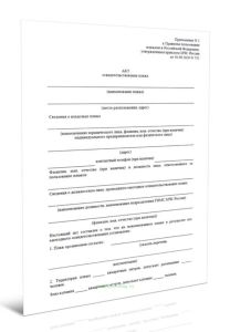 Форма акта соответствует Приложению 2 к "Правилам пользования пляжами в Российской Федерации".
