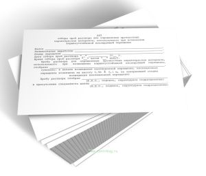Акт отбора проб раствора для определения прочностных характеристик материала, используемого при возведении взрывоустойчивой изолирующей перемычки продается только как чистый незаполненный бланк, без печатей и подписей соответствует 149-ФЗ от 27.07.2006