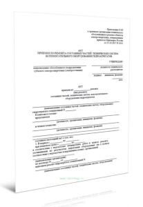 Акт приемки из ремонта составных частей, технических систем, вспомогательного оборудования гидроагрегатов