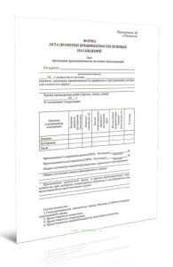 Форма акта проверки приживаемости зеленых насаждений соответствует Приложению 18 к Постановлению Правительства Москвы от 10.09.2002 N 743-ПП "Об утверждении Правил создания, содержания и охраны зеленых насаждений и природных сообществ города Москвы"