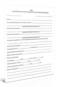 Акт гидравлического испытания системы теплопотребления продается только как чистый незаполненный бланк, без печатей и подписей соответствует 149-ФЗ от 27.07.2006