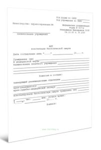 Форма акта приведена в "Перечне форм первичной медицинской документации учреждений здравоохранения" утв. Приказом Минздрава СССР от 04.10.1980 N 1030, который утратил силу.