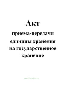 Форма акта приема-передачи единицы хранения на государственное хранение соответствует приложению 16 к Основным правилам работы с научно-технической документацией в организациях и на предприятиях, которые утратили силу.