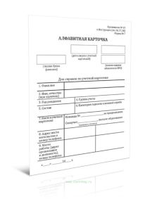 Алфавитная карточка (Форма N 7) продается только как чистый незаполненный бланк, без печатей и подписей соответствует 149-ФЗ от 27.07.2006