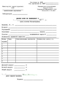 Анализ мочи по Зимницкому, форма 211/у, утвержден Приказом Минздрава СССР №1030 «Об утверждении форм первичной медицинской документации учреждений здравоохранения» от 4 октября 1980 г., 01041074.