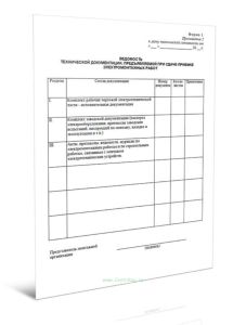 Ведомость технической документации, предъявляемой при сдаче - приемке электромонтажных работ (Форма 1)