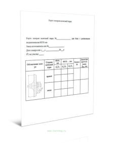 Форма карты замеров колесной пары соответствует приложению О к Руководящему документу по ремонту и техническому обслуживанию колесных пар с буксовыми узлами грузовых вагонов магистральных железных дорог колеи 1520 (1524 мм), который утратил силу.