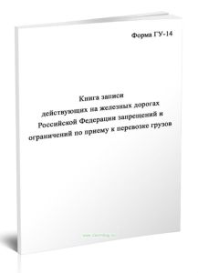 Форма Книги записи действующих на железных дорогах Российской Федерации запрещений и ограничений по приему к перевозке грузов (№ ГУ-14) разработана на основании Распоряжения ОАО "РЖД" от 01.03.2007 N 333р "Об утверждении Инструкции по ведению на станциях коммерческой отчетности при грузовых перевозках ОАО "РЖД", которое утратило силу.