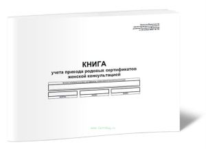Форма книги учета прихода родовых сертификатов женской консультацией соответствует Приложению 2 «К порядку обеспечения родовыми сертификатами государственных и муниципальных учреждений здравоохранения, их учета и хранения» к Приказу Министерства Здравоохранения и социального развития Российской Федерации № 701 «О родовом сертификате» от 28 ноября 2005 года (с изменениями на 8 мая 2009 года).