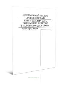 Контрольный листок сроков возврата книги является документом, удостоверяющим дату выдачи документов и приема их в библиотеку от пользователя.