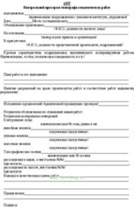 Образец и пример заполнения акта контрольной проверки топографо-геодезических работ