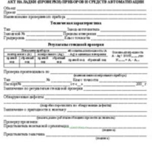 Образец и пример заполнения акта наладки (проверки) приборов и средств автоматизации