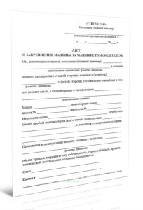 Образец и пример заполнения акта о закреплении машины за машинистом (водителем)