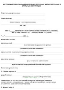 Акт приемки смонтированных сборных бетонных, железобетонных и стальных конструкций