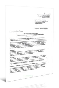 Мотивированное представление о направлении предостережения о недопустимости нарушения обязательных требований