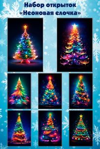 Набор открыток "Неоновая елочка"