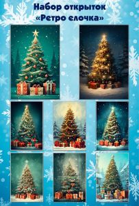 См. также Набор мини открыток "Ретро елочка" меньшего размера.