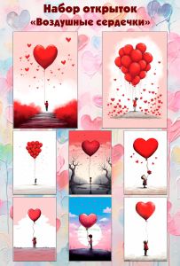 См. также Набор мини открыток "Воздушные сердечки" меньшего размера.