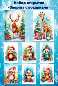 См. также Набор мини открыток "Зверята с подарками" меньшего размера.