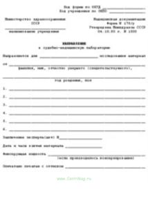 Образец и пример заполнения направления в судебно-медицинскую лабораторию