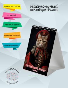 Забавный календарь содержит изображения котов в богатых одеяниях, сгенерированные с помощью нейросети. Календарь будет отличным подарком для ваших родных, друзей, знакомых, коллег или даже для себя.