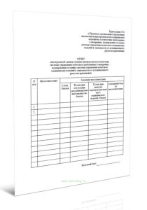 Форма отчета соответствует Приложению 6 к Постановлению Правительства РФ от 09.02.2022 N 135 "Об утверждении Правил организации и проведения инспектирования производства медицинских изделий на соответствие требованиям к внедрению, поддержанию и оценке системы управления качеством медицинских изделий в зависимости от потенциального риска их применения"