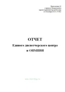 Форма отчета Единого диспетчерского центра и ОНМПВН соответствует Приложению 10 к Приказу от 18 ноября 2015 г. N 982 О дальнейшем совершенствовании организации работы отделений неотложной медицинской помощи взрослому населению.