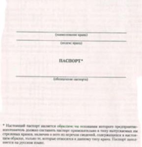 Паспорт издается в жесткой обложке на листах формата 210x297 мм. Формат паспорта типографского издания 218 X 290 мм.
