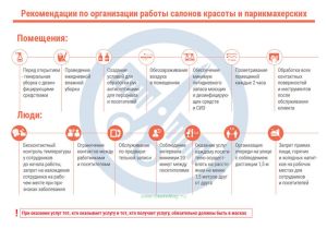 Плакат содержит рекомендации по организации работы салонов красоты и парикмахерских в период распространения коронавирусной инфекции.