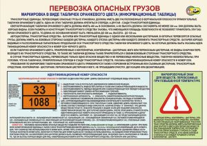 Плакат "Перевозка опасных грузов. Маркировка в виде табличек оранжевого цвета (информационные таблицы)"