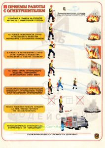 Плакат "Приемы работы огнетушителем" (самоклеющийся)