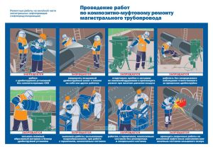 Плакат "Проведение работ по композитно-муфтовому ремонту магистрального трубопровода"
