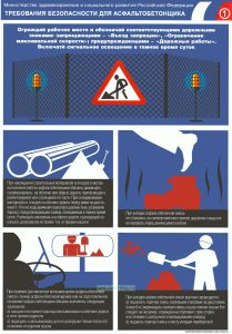 Плакат посвящен обеспечению безопасности труда асфальтобетонщиков. На нём представлены основные опасности, связанные с данной профессией, а также меры по их предотвращению. Включает в себя иллюстрации, ясную и понятную информацию о необходимых средствах индивидуальной защиты (СИЗ), правилах эксплуатации техники и соблюдении технологии работ. Цель плаката – снижение риска травматизма и профессиональных заболеваний у асфальтобетонщиков путем повышения осведомленности о правилах безопасности. Плакат содержит краткие, но емкие инструкции по безопасному выполнению различных операций, связанных с укладкой и уплотнением асфальтобетонных смесей.