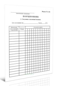 Форма порционника разработана на основе Приложения 4 к Приказу Минздрава России от 05.08.2003 N 330 "О мерах по совершенствованию лечебного питания в лечебно-профилактических учреждениях Российской Федерации".