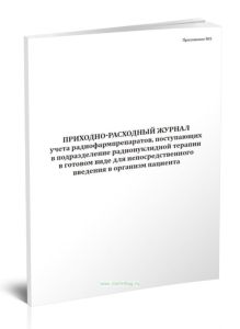 Форма приходно-расходного журнала учета радиофармпрепаратов, поступающих в подразделение радионуклидной терапии в готовом виде для непосредственного введения в организм пациента соответствует Приложению 5 к СанПиН 2.6.1.2368-08. Гигиенические требования по обеспечению радиационной безопасности при проведении лучевой терапии с помощью открытых радионуклидных источников.