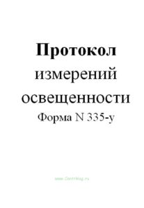 Форма протокола измерений освещенности (Форма N 335-у) утверждена приказом Минздрава СССР №1030 "Об утверждении форм первичной медицинской документации учреждений здравоохранения", который утратил силу.