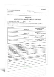 Форма протокола соответствует Приложению 3 к Письму Минздрава России от 17.08.2021 N 17-4/3549 О направлении "Методических рекомендаций по организации центров амбулаторной онкологической помощи в субъектах Российской Федерации"