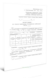 Расчет-заявка на отпуск инженерных боеприпасов войсковой части