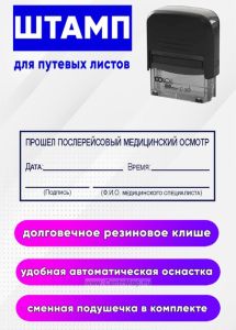 Штамп для путевых листов "Послерейсовый медицинский осмотр прошел" (660 руб.)