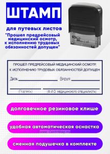 Штамп для путевых листов "Предрейсовый медицинский осмотр прошел" (660 руб.)