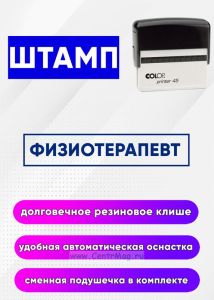 Штамп "Физиотерапевт" используется в медицине для отображения специальности врача.