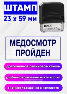 Штамп "Медосмотр пройден" применяется в медицинских учреждениях для заключения о состоянии здоровья человека.