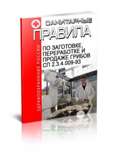СП 2.3.4.009-93 Санитарные правила по заготовке, переработке и продаже грибов разработаны и утверждены на основании Закона РСФСР "О санитарно-эпидемиологическом благополучии населения" от 19 апреля 1991 года.Санитарные правила предназначены для предприятий, осуществляющих заготовку, переработку и продажу грибов, а также для учреждений санитарно-эпидемиологической службы.