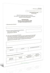 Учетная карта объекта, представляющего собой историко-культурную ценность
