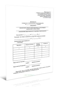 Форма ведомости соответствует Приложению 67 к Приказу Минэнерго России от 25.10.2017 N 1013 "Об утверждении требований к обеспечению надежности электроэнергетических систем, надежности и безопасности объектов электроэнергетики и энергопринимающих установок "Правила организации технического обслуживания и ремонта объектов электроэнергетики"