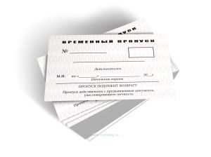 Бланк временного пропуска  печатается на  бумаге плотностью 160 г.