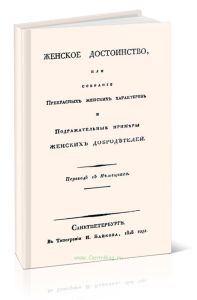 Те превосходные примеры женских добродетелей, кои находим мы рассеянными во многих сочинениях, журналах и других периодических изданиях, по всей справедливости заслуживают быть собранными в особую книжку и выставленными один подле другого, кои бы всякой благородномыслящей и воспитанной особе могли доставить иногда столь же приятное, как и полезное провождение времени; - и таковая книжка без сомнения не была бы излишня для любителей чтения.