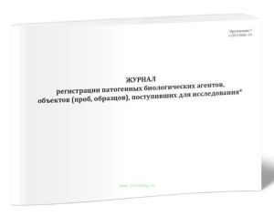 Во всех подразделениях организации, осуществляющих работы с использованием ПБА I-IV групп, должен быть обеспечен учет их наличия, количества и передвижения. Патогенные биологические агенты, объектов (проб, образцов), поступивших для исследования регистрируют в журнале. Журнал должен быть пронумерован, прошит и хранится у руководителя организации или лиц, уполномоченных руководителем организации на их ведение.