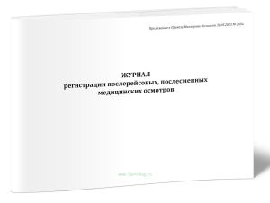 Форма "Журнала регистрации послерейсовых, послесменных медицинских осмотров" соответствует Приложению к Приказу Минздрава России от 30.05.2023 № 266н